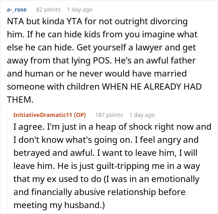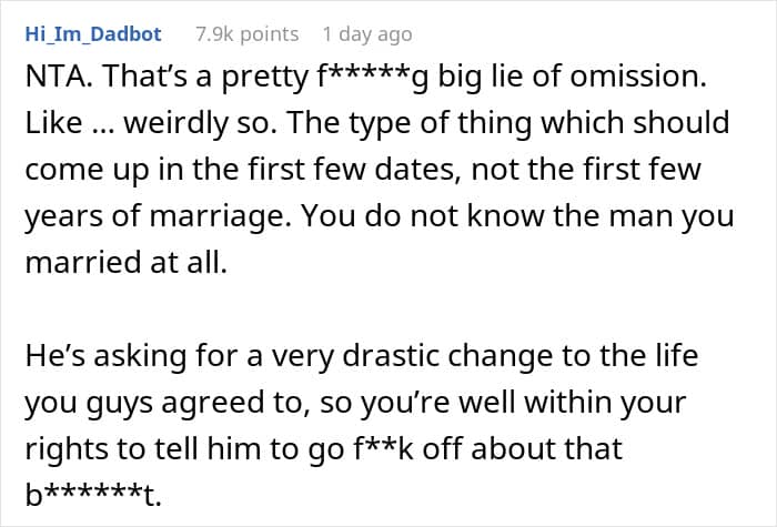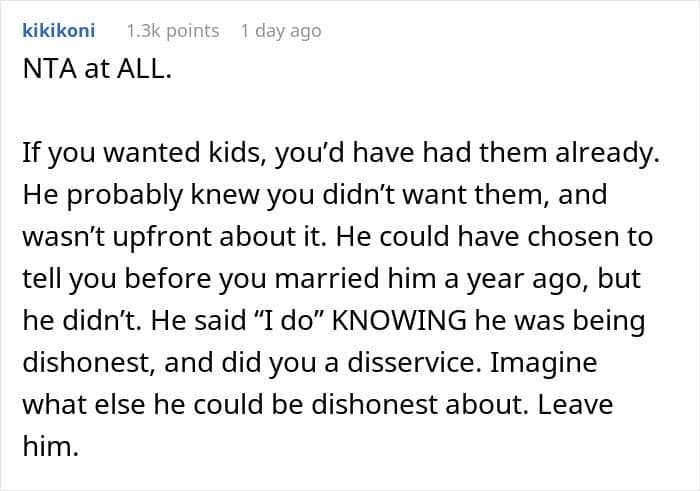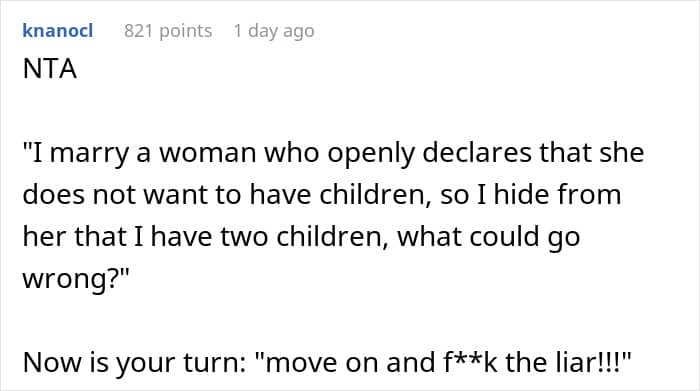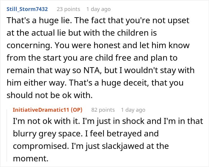 But in the OP’s situation, stigmatization or comments about the decision to be child-free weren’t the problem; it was the fact that her husband hid something as significant as already having had children from her.