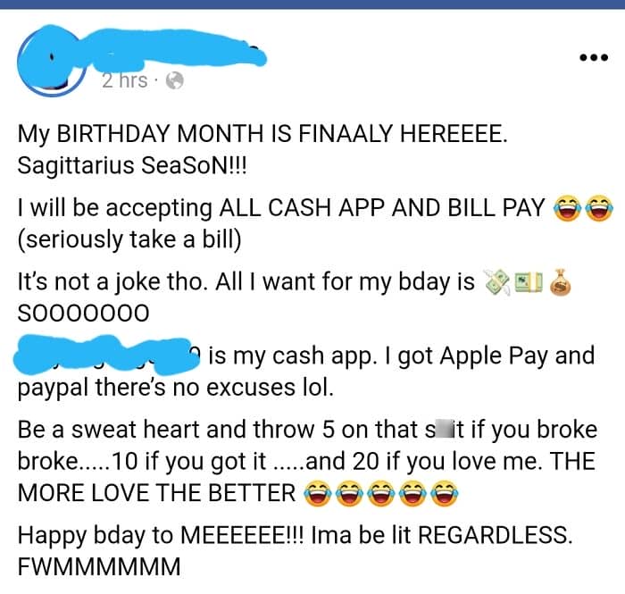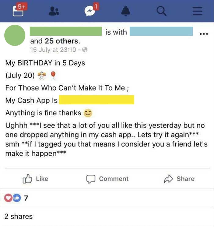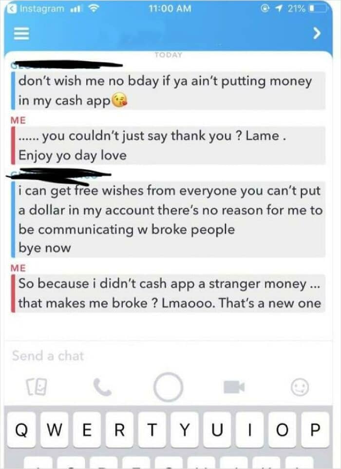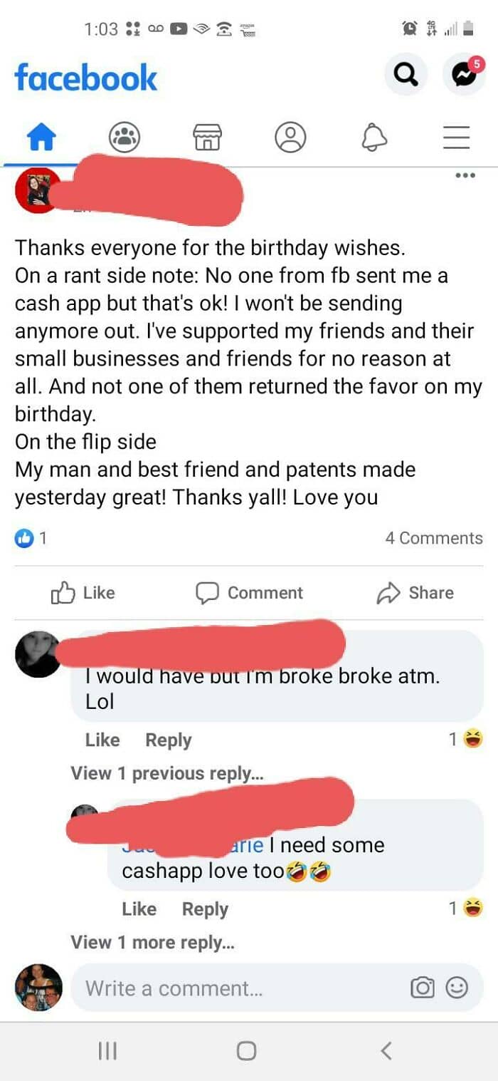 #53 I Know This Is Short, But This A Girl I Used To Go To College With. Moral Of The Story, People Will Give You Money For Your Birthday If They Feel Like It And They Have It