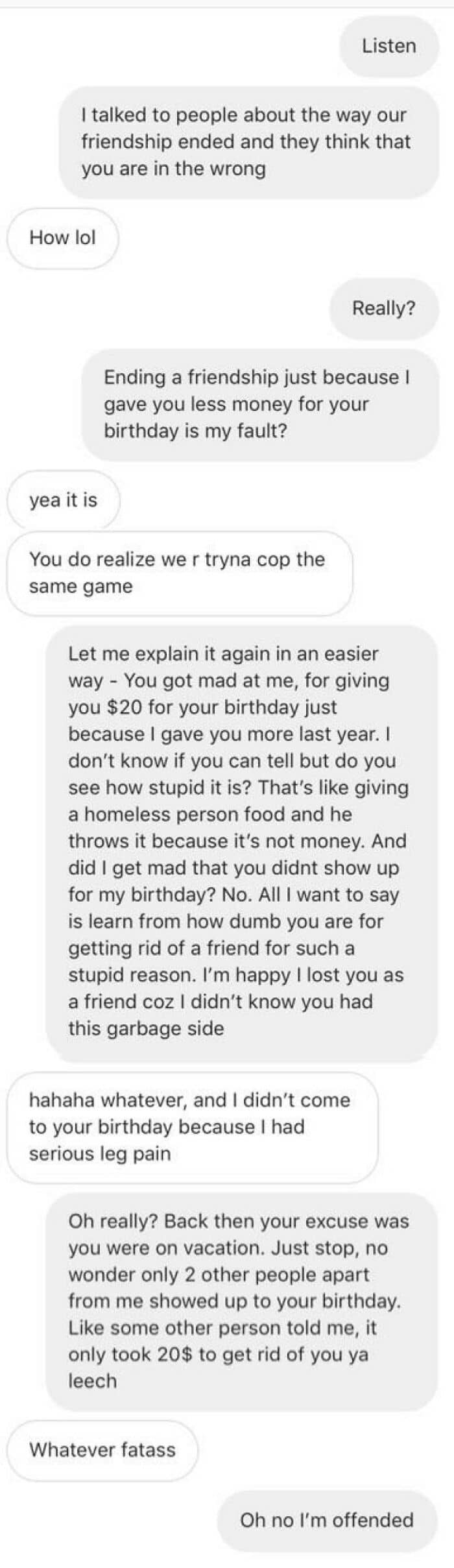 #8 I Made A Post Awhile Back About My Cb Exfriend Who Got Mad Because I Gave Him Less Money For His Birthday Compared To Last Year, And After The Post And The Comments I Decided To Message Him About It And This Is What He Said