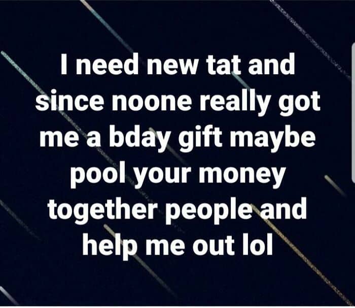 #50 My Stepdad Was Kind Of Salty About Not Getting Anything For His Birthday. So He Turned To Facebook To Beg For People To Pay For His Next Tattoo