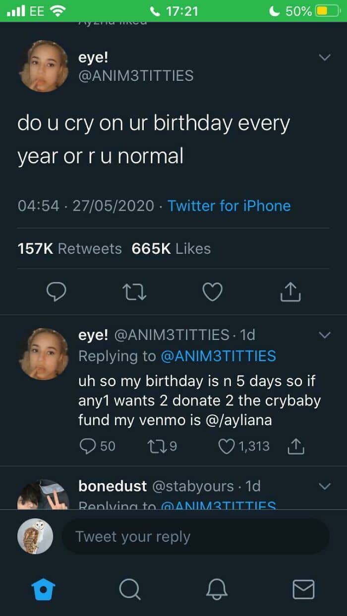 #4 “Pls I Have Birthday I Just Got Cancer Too”