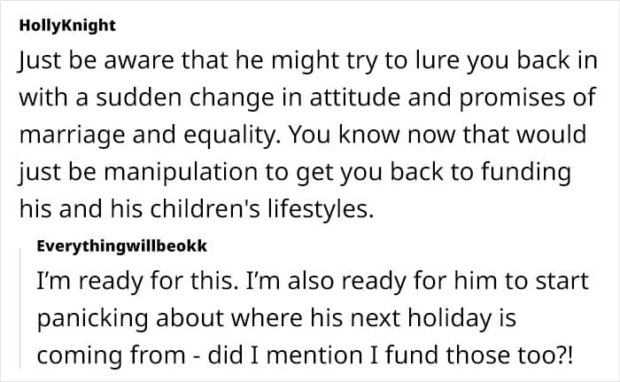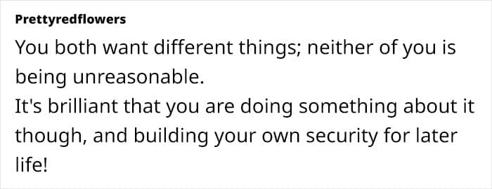 This only sounds fair as she’s helping him pay the mortgage, and she even mentions that she would not have taken away any of the inheritance from his kids. Netizens found her partner abysmal due to his selfishness, but there were a few who pointed out that he was clear he didn’t want to get married.
