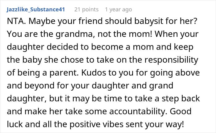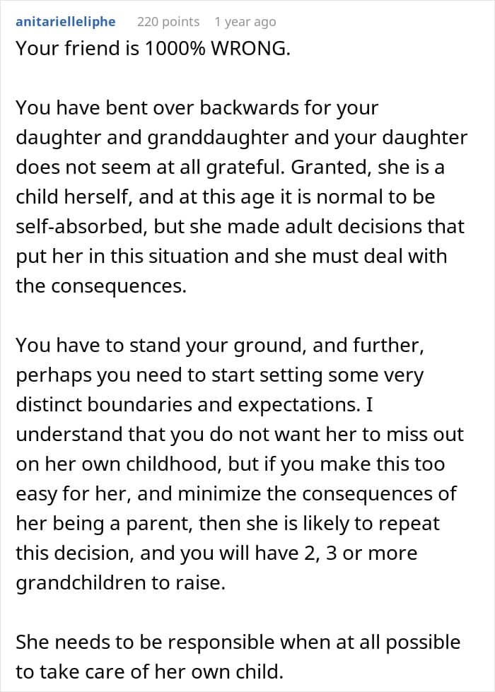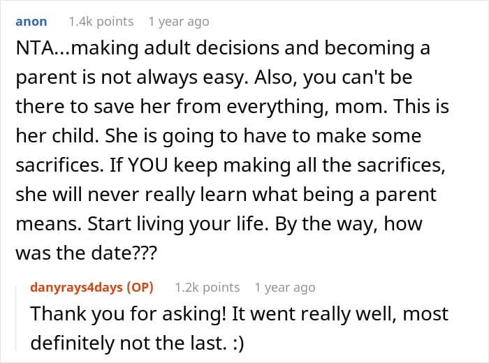 This grandma, however, was asked out for Valentine’s and planned to go, despite her daughter who’s a teen mom thinking she would babysit instead. After a dramatic exchange of insults, the young grandmother decided to ask for unbiased opinions: was she wrong to not let her daughter go out for Valentine’s and look after her baby herself?