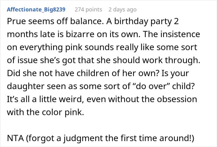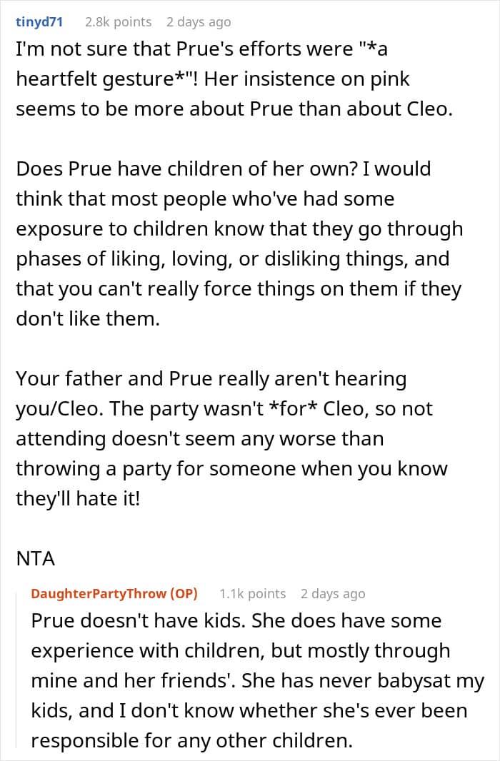 So when her grandad’s partner decided to throw a pink-themed party, it ended about as well as you’d expect