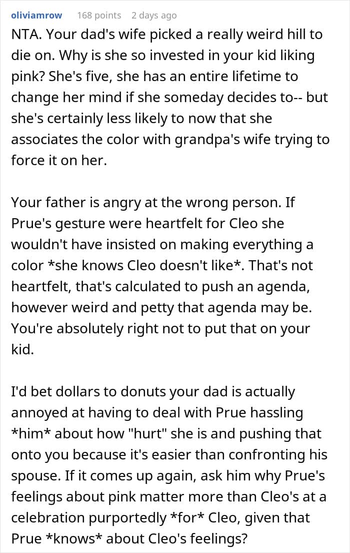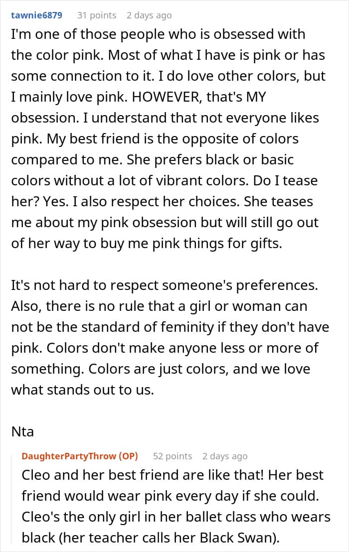 It’s perfectly fine to love pink, and just as fine to dislike it. But forcing that preference onto someone else? Not so much.