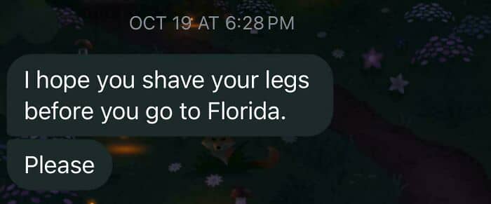 For context, my mother is weird about my facial and body hair. Once I was literally in the hospital for an accident that SHE caused and as they were cutting my clothes off me, she was more worried about my leg hair than the fact I, you know, just got beat in the head til I was unrecognizable and was not sure I was gonna make it out alive. Good times!