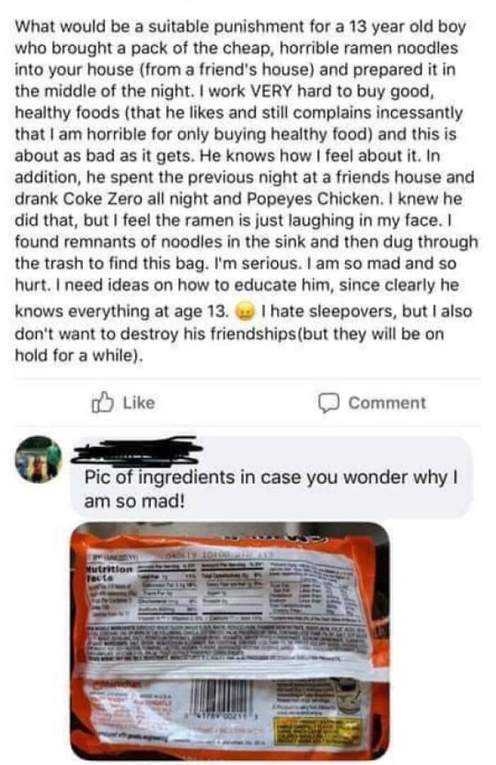 #36 She Has A Son Who’s So Well-Behaved, She’s Going To Punish Him For A Pack Of Ramen… That He Cooked Himself