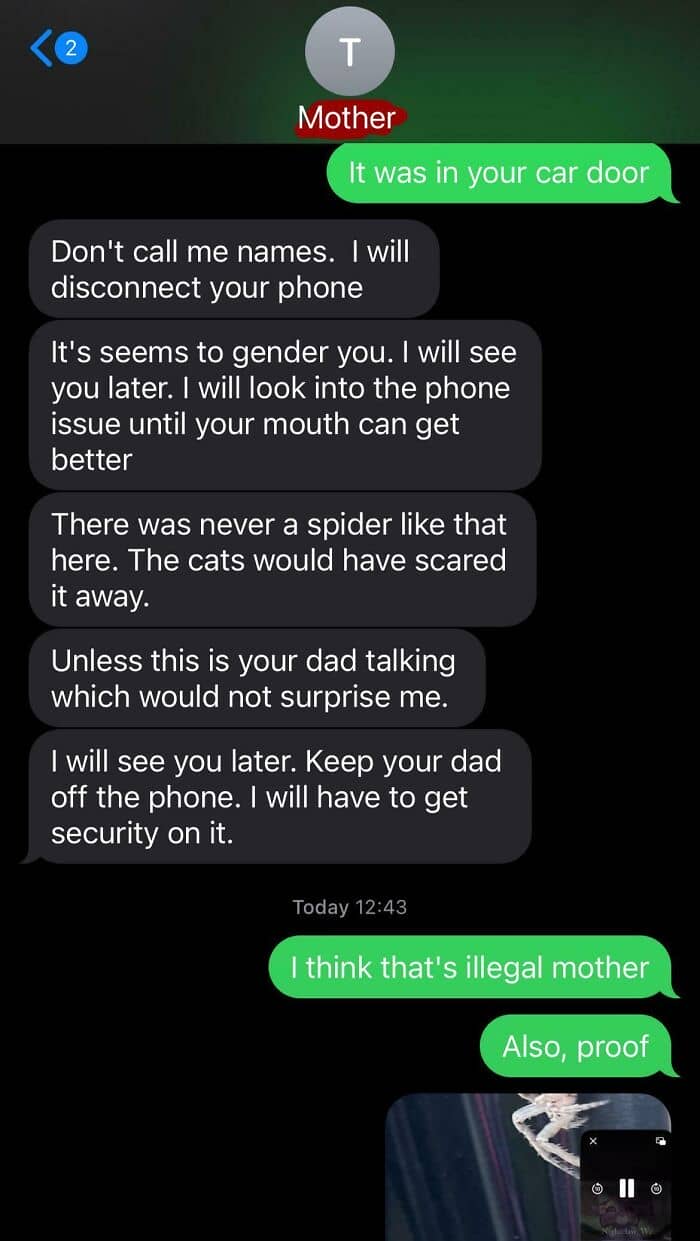 So basically I caught a spider a while ago, and she assumed that she has control over my phone which she isn’t even paying for and that she didn’t even buy