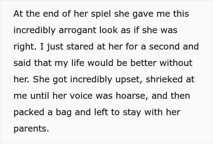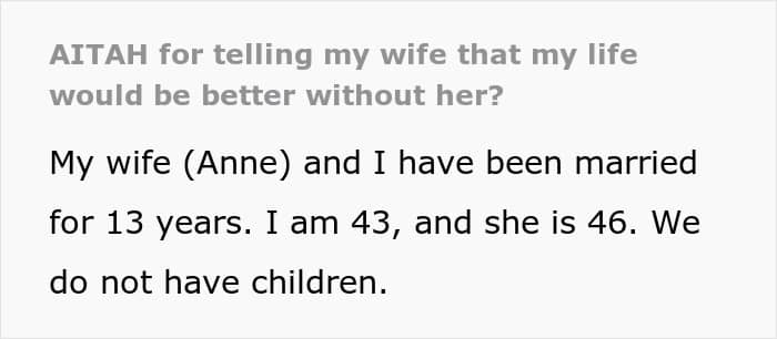 One man, fed up with his wife’s lack of support and constant need to be right, told her his life would be better without her