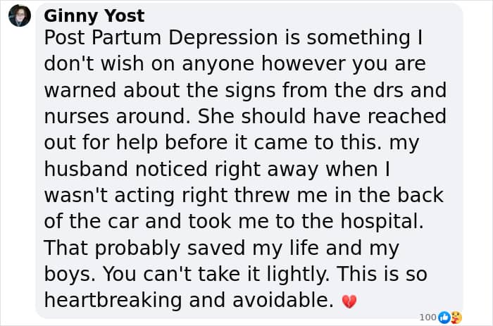 “If she was really battling post-partum depression, that’s a serious thing. People needed to be there for her,” stated former classmate Sage Miears.