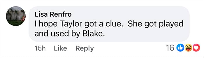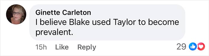 Similarly, an insider told Page Six that “Taylor really wishes Blake hadn’t dragged her into this whole situation.”