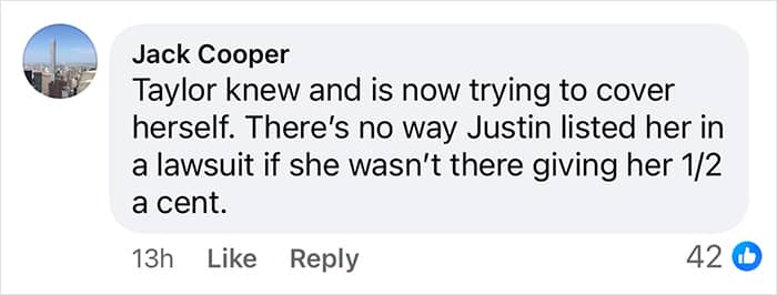 He claimed Lively, her husband Ryan Reynolds, and a “mega-celebrity friend”—later identified as Swift—were present at Lively and Reynold’s apartment.