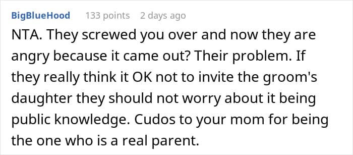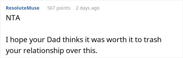 Below, you’ll find the full story that this teen recently shared on the “Am I the [Jerk]?” subreddit, detailing how she was uninvited from her dad’s special day, as well as a conversation with Jhona Yellin, Editor at Bespoke Bride.