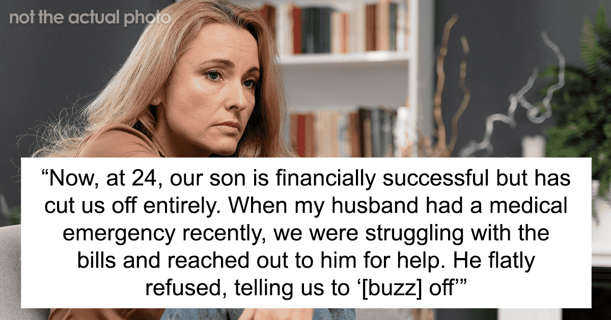 Now that he’s 24 and financially secure, OP says that her son has cut them off entirely. She adds that, recently, her husband had a medical emergency, leaving them with a mountain of bills. Struggling to cope, the couple reached out to their son for help. He flatly refused, crushing his dad who is apparently filled with regret about how they treated him in the past.