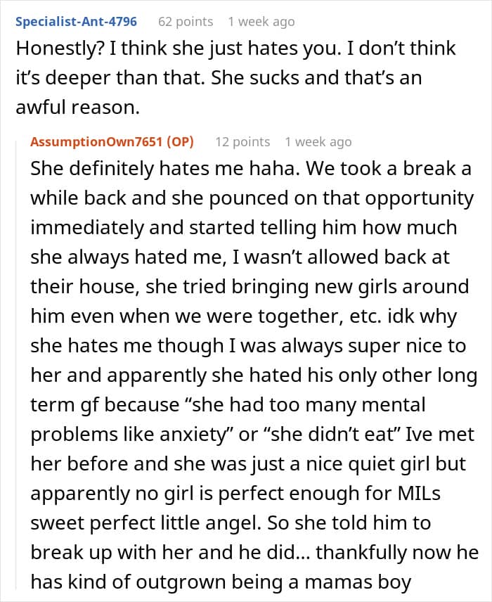 So, the Original Poster (OP) says that she recently gave birth to a daughter, and since then, she cannot understand which motives drive her mother-in-law when communicating with her. Previously, when the author and her boyfriend temporarily broke up, she kept telling him how bad his ex was, but the couple reconciled, and now everything is fine in their relationship.