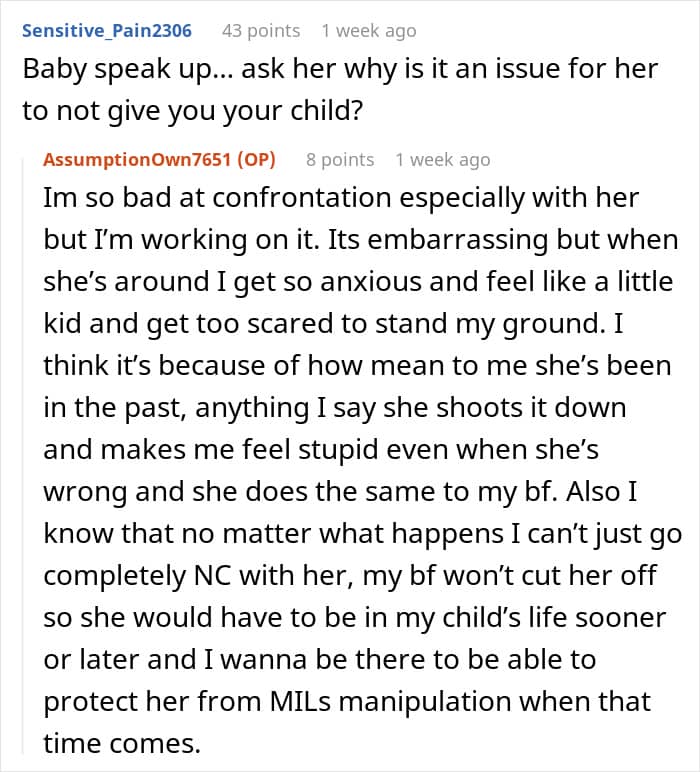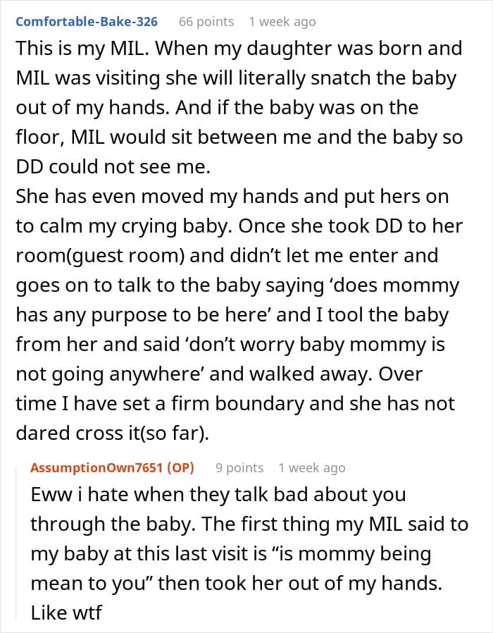 Most commenters unanimously sided with the new mom, claiming that they have similar problems with own mothers-in-law