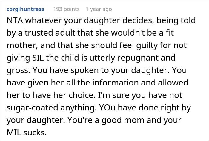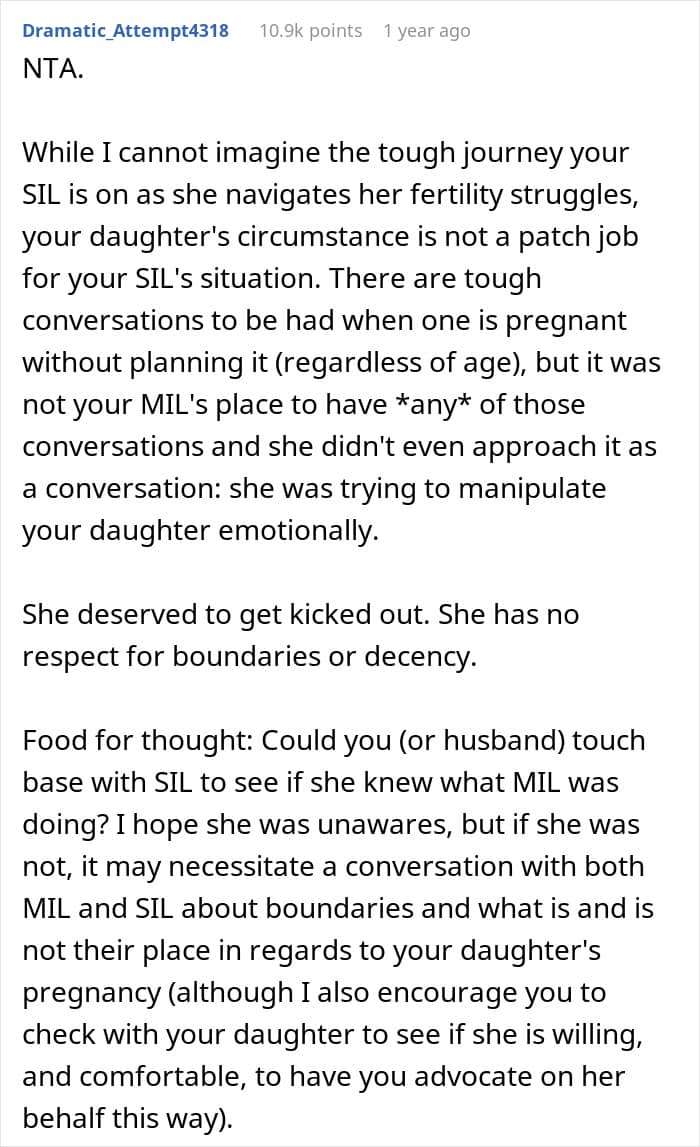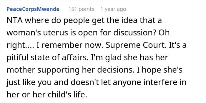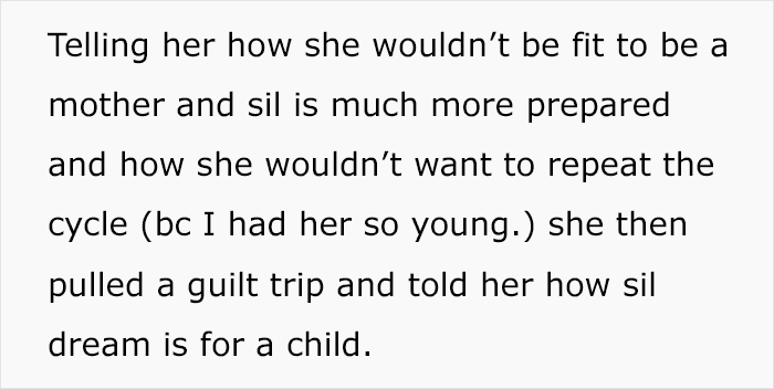 Unfortunately, not all family members were supportive of this teen’s choice to become a mother. Especially the grandmother, who tried shaming and guilt-tripping her granddaughter into giving up the baby to her infertile aunt, for which she got kicked out of the house.
