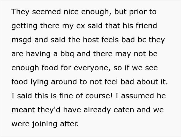 For this redditor, though, a BBQ party became an experience she wouldn’t want to repeat. Having ended up at a party with eleven other people, only eight of whom were invited by the host, she was among the individuals there was no food for. However, after the eight people were done eating, the rest were invited to help themselves to the leftovers. Needless to say, the OP found it really weird.