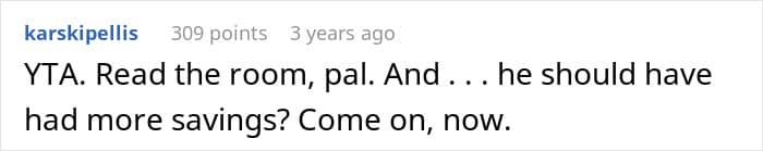 Further, he also said that he didn’t want the poster around him anymore, but the poster felt that it was an overreaction, and even mentioned that he should’ve had “more savings.” However, when he vented online, Redditors opened his eyes about how wrong he was!