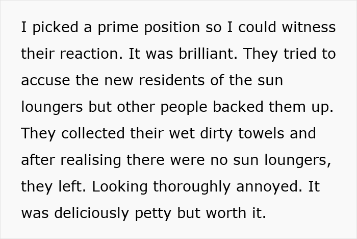 A man delivered petty revenge on entitled guests at an island resort who reserved seven sun loungers using their towels