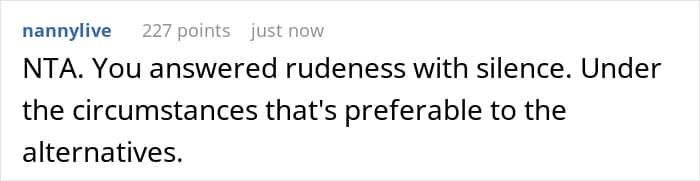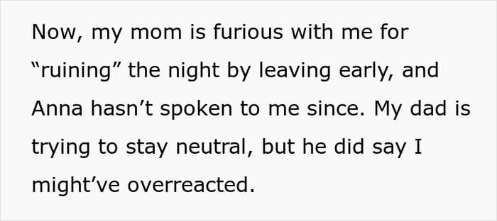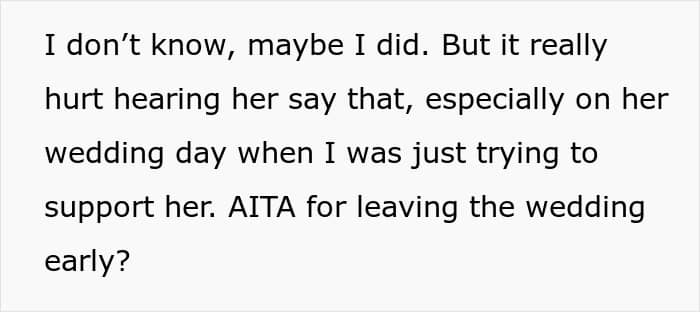In any case, the sister’s reaction seems completely inappropriate, and the vast majority of commenters on the original post also emphasized this. “It was rude to begin with, but the fact that that’s how she responded to you congratulating her tells me that she was intentionally trying to be hurtful and dismissive,” one of the responders wrote. “You did not overreact by leaving. Her response to you was incredibly inappropriate.”