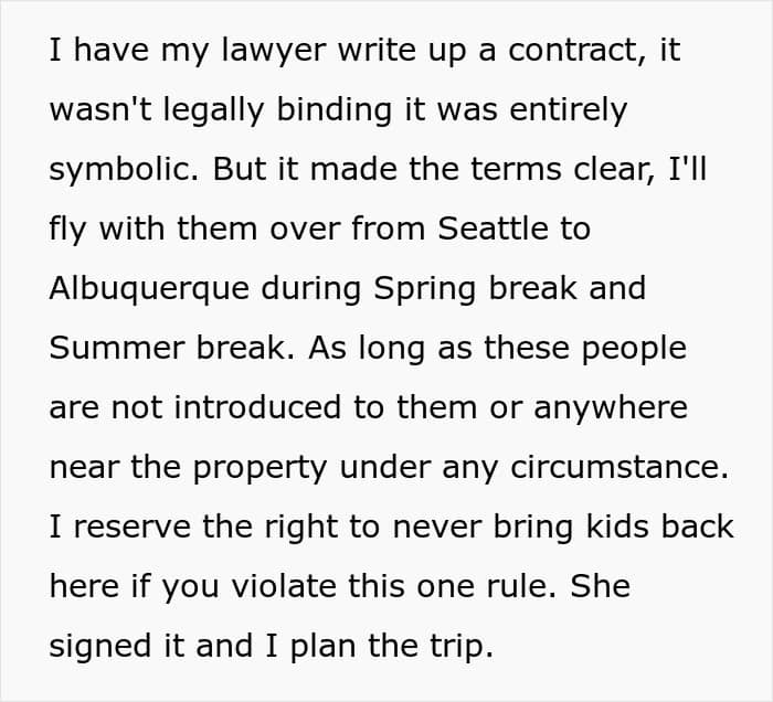 After only 2 hours, the aunt shows up, and the dad and his kids immediately leave his parents’ house, blocking all communication with them for breaking his one rule