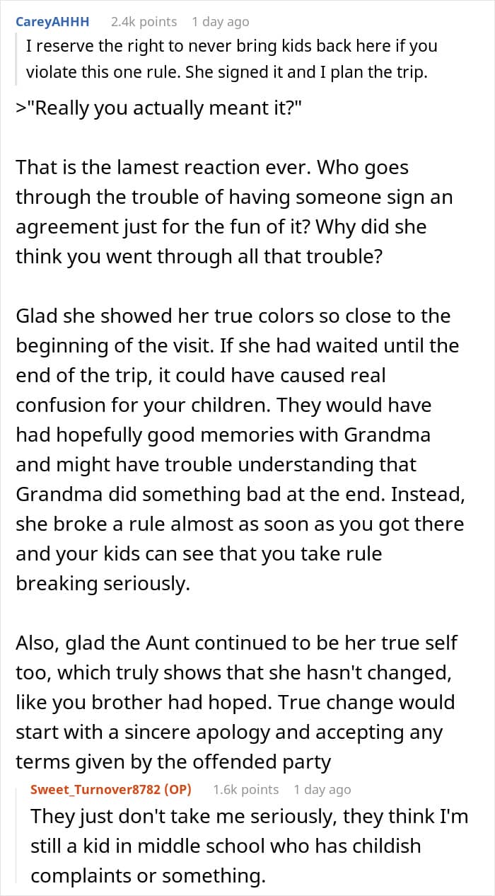 To make sure there was no confusion, our dad even created a symbolic contract for his mom to sign. Nothing legal, just a good old-fashioned “mess up and we’re out” vibe. And wouldn’t you know it? Not even 2 hours into their visit, Auntie and her crew strolled in like they owned the place. I don’t know about you, but I’d be fuming at that point.