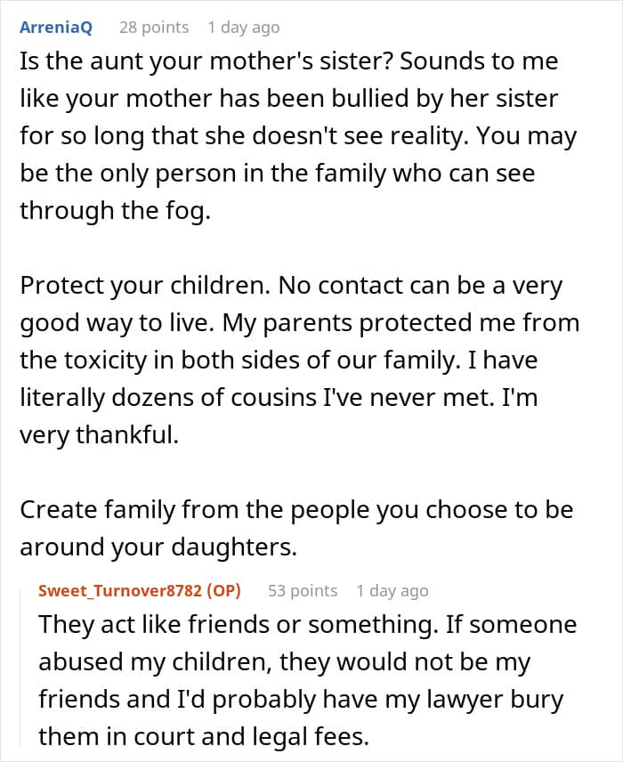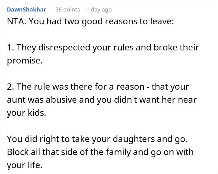 So, here’s the tea: a dad, trying to do the right thing by his twin daughters, laid down one simple rule before visiting his parents’ house—to keep his toxic, abusive aunt, and her clan, far away from his kids.
