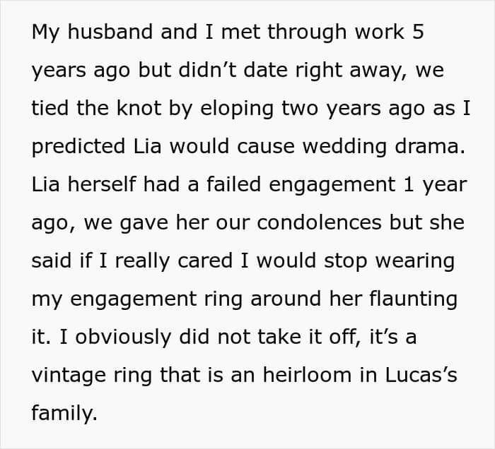 First and foremost, obviously, OP is so far in the right, that it seems superfluous to even ask the internet for advice, particularly when her husband is also firmly on her side. She simply has the misfortune, though no fault of her own, to deal with people who feel like they can simply make these demands. It’s clear that the sister has some unresolved issues due to her own failed relationships, but what is even stranger is the fact that her family seems to be going along with it.