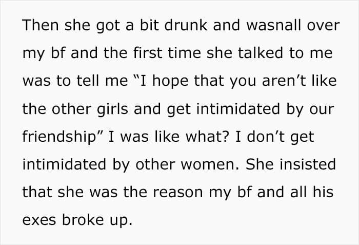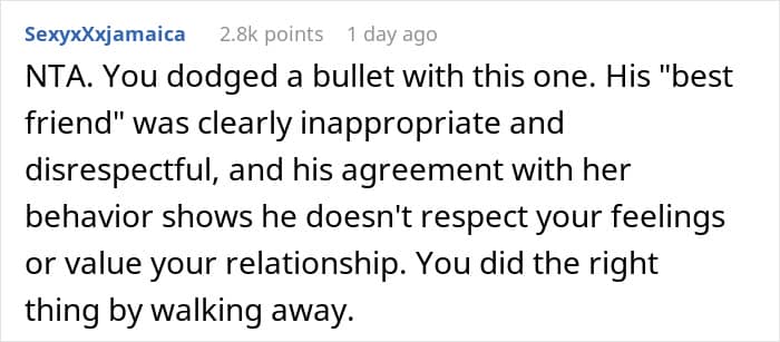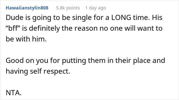 This ‘bestie’ quickly got a little too close for comfort and bragged about being the reason for all his past breakups. That was all it took for the woman to call it quits with her boyfriend right then and there.