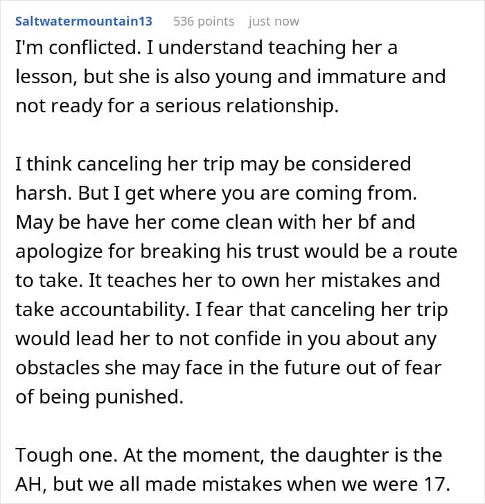 Netizens were quite divided on this one. Some comments showed support for the OP’s stance. They maintained that she was right for wanting to teach her daughter about accountability and respect. Others felt her punishment was overly harsh and disconnected from the offense.