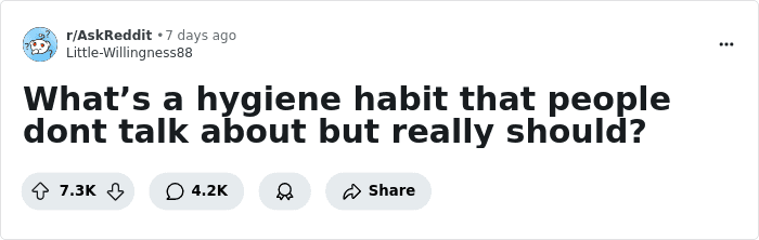 Someone asked “What’s a hygiene habit that people don’t talk about but really should?” and people detailed all the things more folks need to start doing. So get comfortable as you scroll through, upvote your favorites and share your own examples in the comments section below.