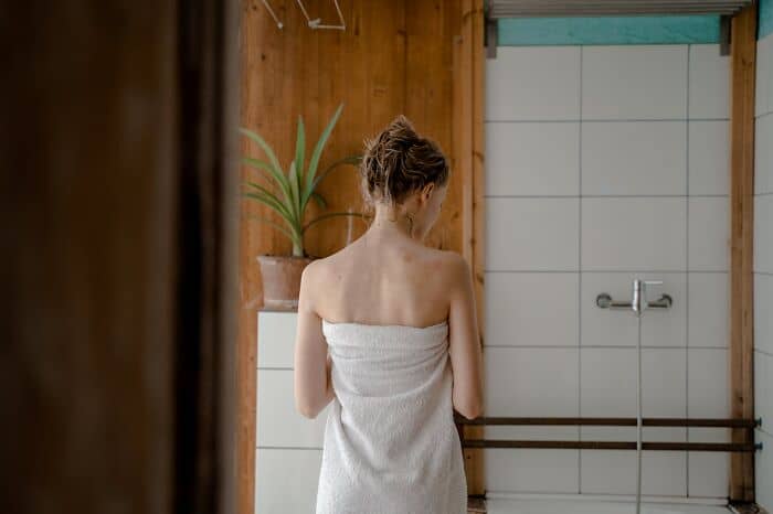 Scrubbing their neck , or just using a wash cloth in general while in the shower.