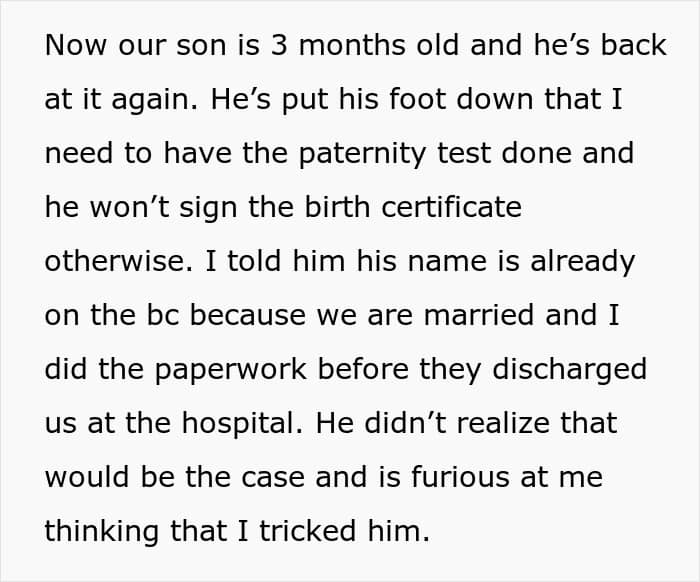 A woman shared her shock at her husband demanding a paternity test out of the blue and insisting that she “tricked” him with her birth certificate. We reached out to the wife via private message and will update the article when she gets back to us.