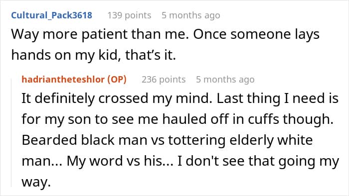 Many people were aghast by the old man’s sense of entitlement in the story and the fact that he felt it was okay to push a child. Others applauded the poster and his paternal instincts that kicked in and they claimed that even they would be furious if someone touched their children.