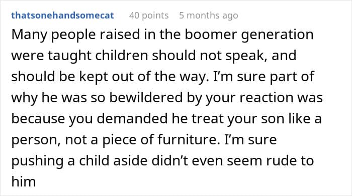 However, before the little fellow could complete his sentence, the old man went ahead and pushed him out of the way, and all hell broke loose. The poster was furious at the man’s audacity and sense of entitlement and demanded that he apologize to the kid.