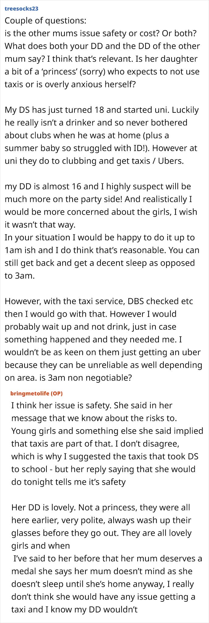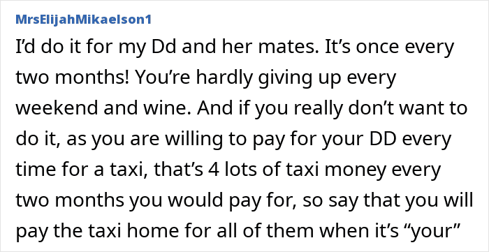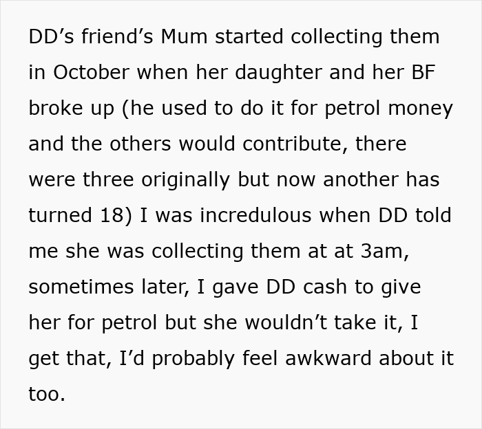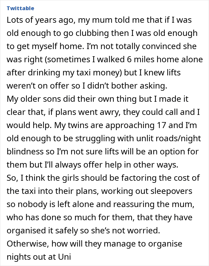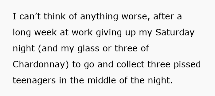 One anonymous mom, user Bringmetolife, asked the friendly Mumsnet online community for some impartial advice about a disagreement she and some other parents had. She shared how one mom kept picking up their teenagers late at night on weekends while they were out partying, but finally had enough. Now, the author said she’s unwilling to do the same because of how exhausting and inconvenient it is. So, she asked for the internet’s verdict. You’ll find the full story below. We has reached out to Bringmetolife for further comment, and we’ll update the article as soon as we hear back from her.