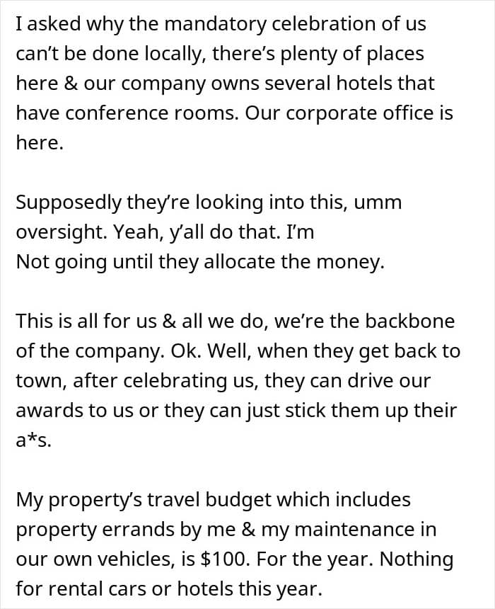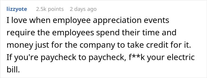 The opportunity presented itself when management announced they were hosting an appreciation event for the employees—except, audaciously, they were expected to cater it themselves. Refusing to let such a ridiculous plan slide, the Redditor spoke up in a way that not only exposed the hypocrisy but also forced the bosses to scramble for a solution. Read the full story below.