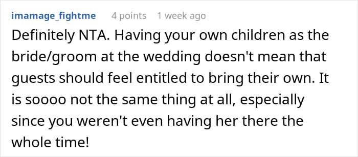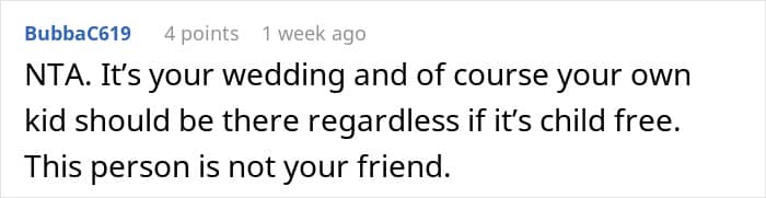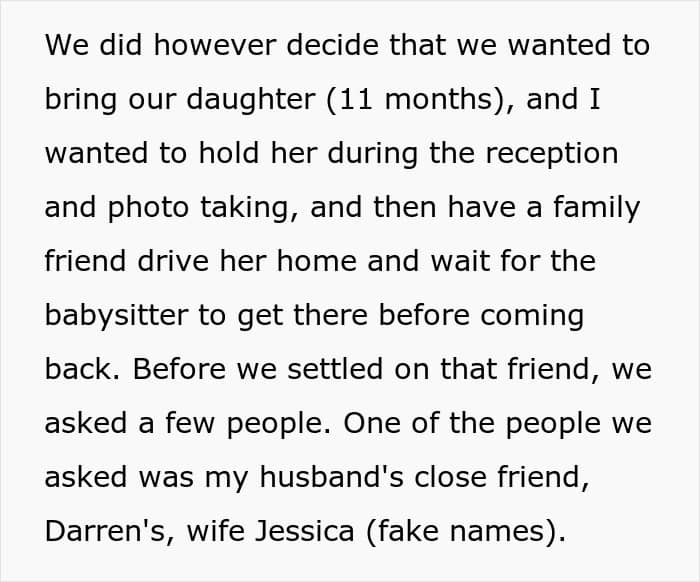 We also asked the bride why she thinks her friend didn’t ask for permission to bring her son ahead of time. “Honestly, I really don’t know. It still confuses me as well,” she said.