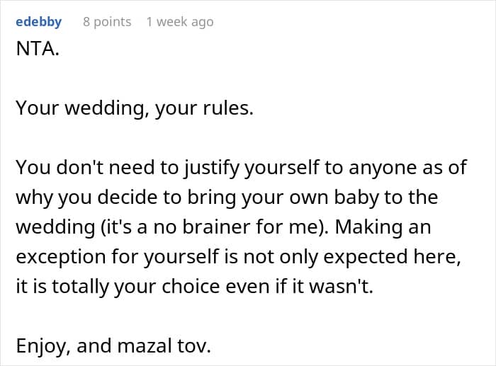 And if you’re paying tens of thousands of dollars for the occasion, shouldn’t you get to decide who exactly gets to attend? We would love to hear your thoughts on this situation in the comments below, pandas. Do you think this bride did anything wrong by bringing her baby to her wedding? Then, if you’d like to check out another We article discussing similar wedding drama, look no further than right here!