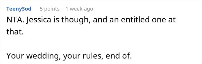 The majority of readers were supportive of the bride, and she joined in on the conversation to provide more details