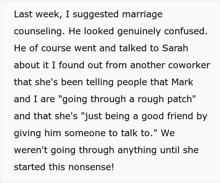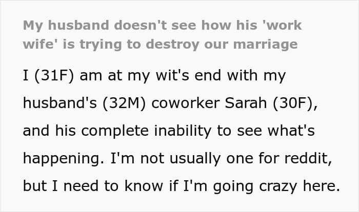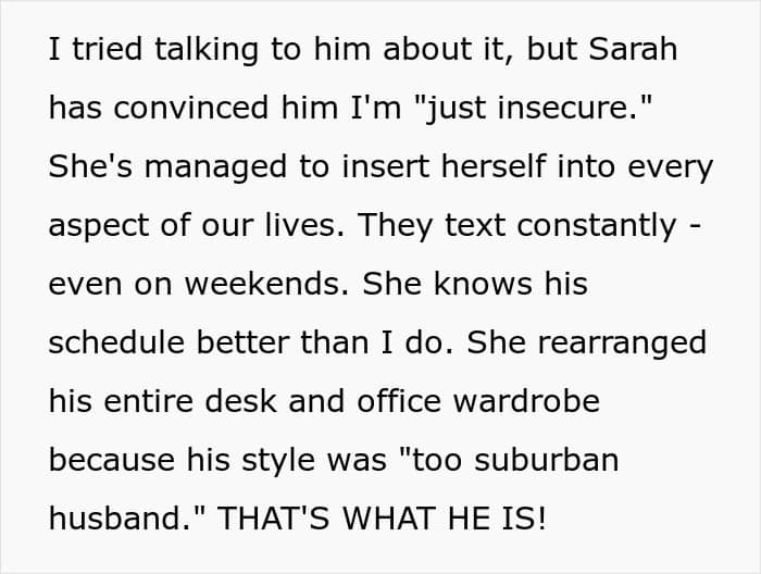 Redditor u/Honeybellmama went viral after opening up online about how her husband’s ‘work wife’ has been undermining their marriage for years. Now, she finally confronted her partner about what’s been going on, including what may have looked like an emotional affair. You’ll find the full story below.