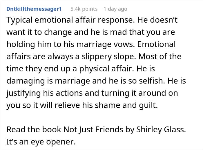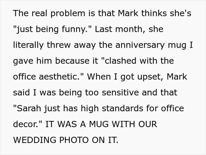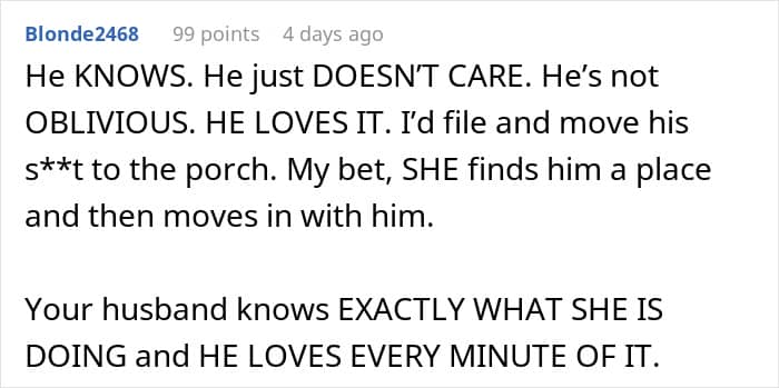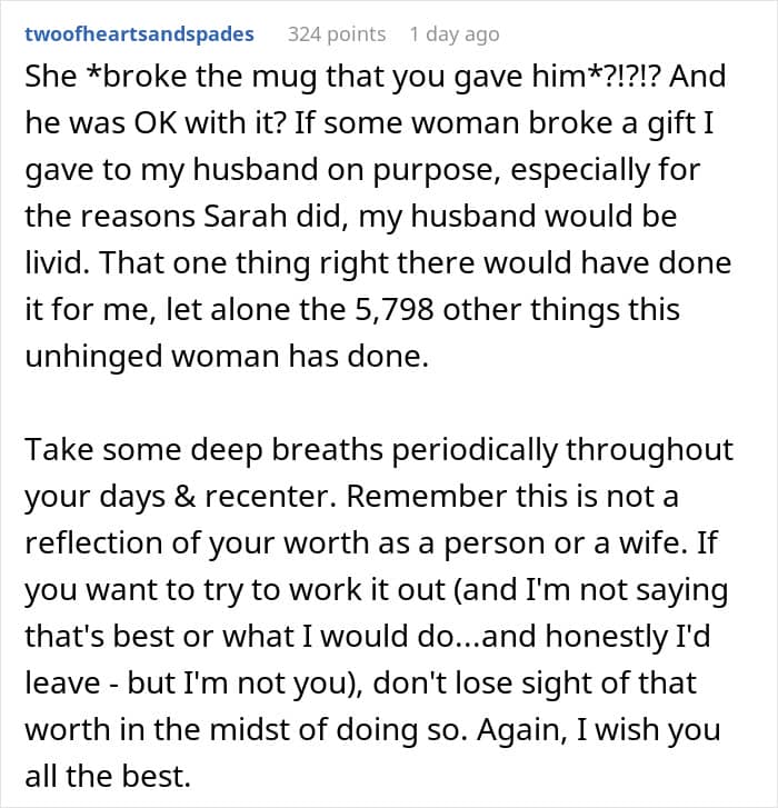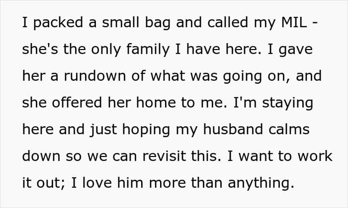 Redditor u/Honeybellmama explained to We that things took a positive turn in the end. “Ultimately, my husband realized that things had crossed a line. He came and talked to me and we are trying to work things out,” she told us.