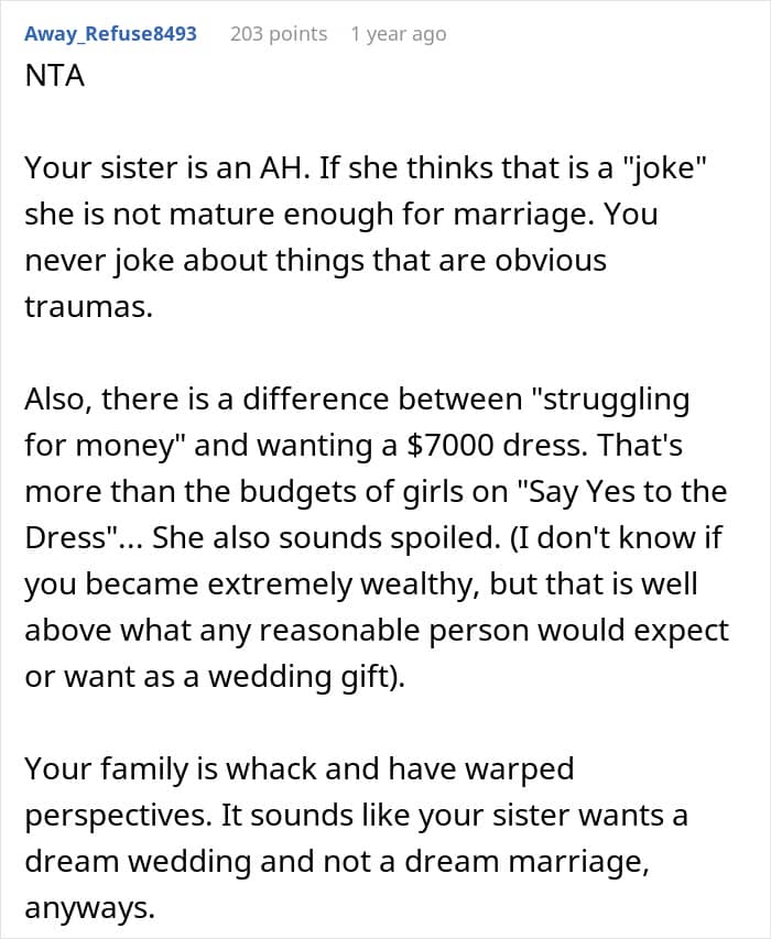 We would love to hear your thoughts on this situation in the comments below, pandas. Do you think this woman was overreacting, or was she right to refuse to pay for her sister’s wedding dress? Then, if you’d like to check out another We article discussing similar wedding drama, look no further than right here!