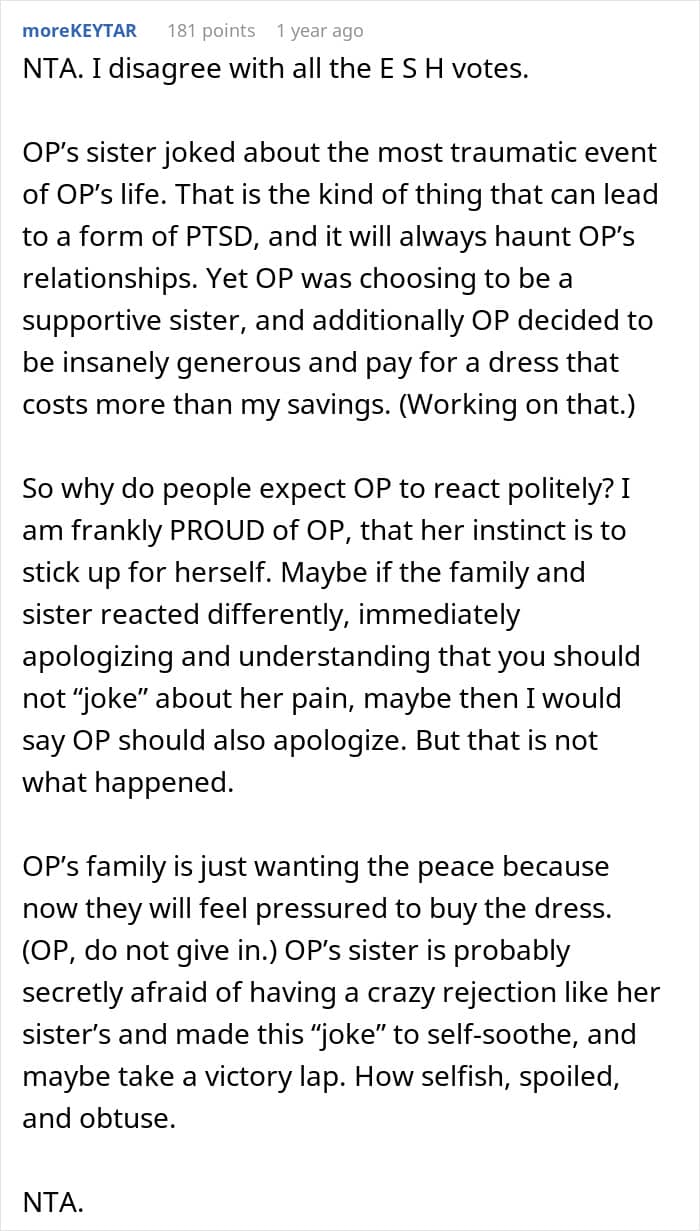 And others called out the author for overreacting to her sister’s “joke”