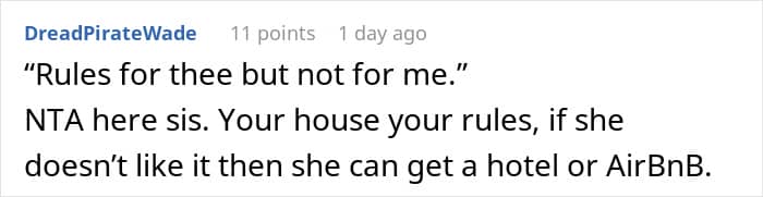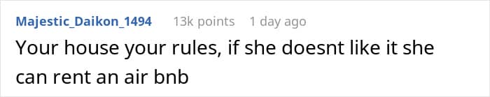 Many readers agreed that the woman had every right to enforce this rule in her own home