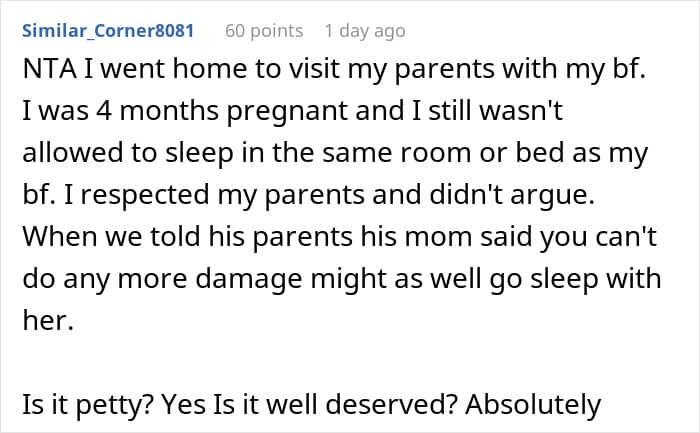 This woman’s mother never allowed her to share a bedroom with her boyfriend while visiting