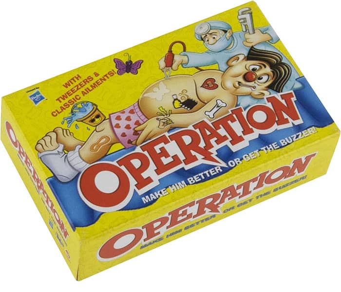 When I was about 8 I asked my dad if we could play “the naked man game.” My dad, trying not to panic, asked me what it was. I responded “it’s the one we play when [the babysitter] is over.” He then asked me to show him where the naked man game was, so I took him to the closet, opened the door, and pointed up to Operation.