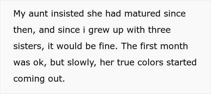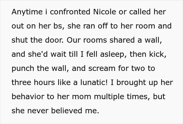 The OP knew Nicole from high school, and even then she had a less-than-flattering reputation among schoolers. The aunt assured the author that the girl had matured since then, but the first couple of weeks under the same roof proved that this was not true.