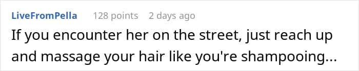 Moreover, some commenters do urge the author to continue this story further – at each subsequent probable meeting with Nicole. “If you encounter her on the street, just reach up and massage your hair like you’re shampooing…” one of the folks suggested. And how would you, our dear readers, act in a similar situation?